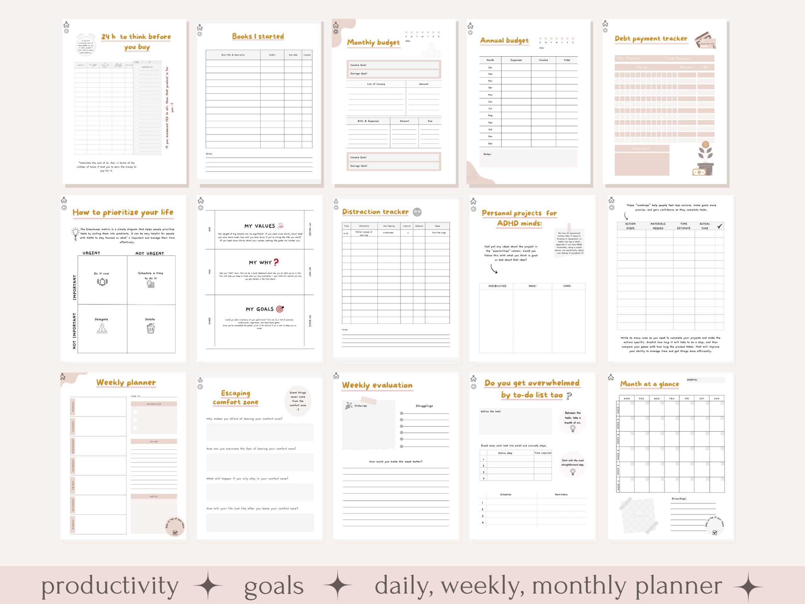 Productivity, finance & fitness planners