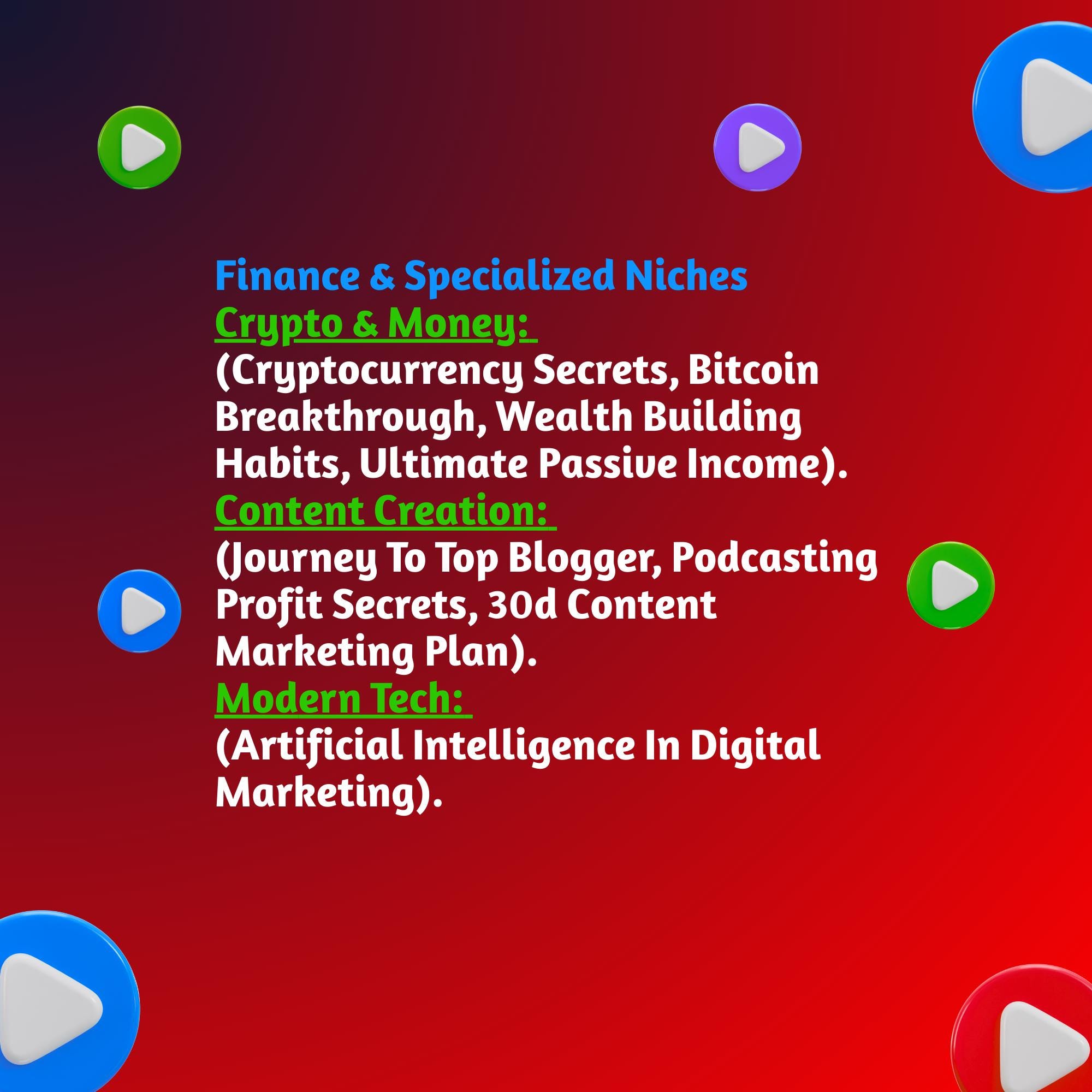 • Topics related to business, marketing, online income, and digital skills