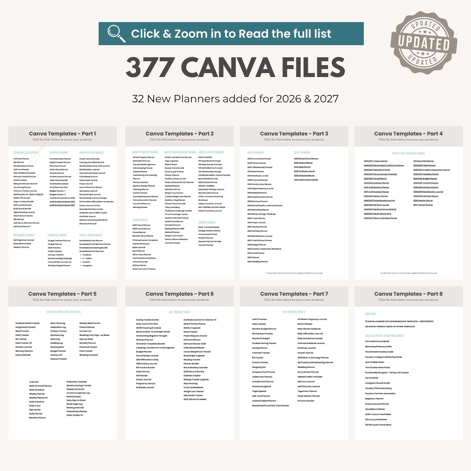 Now includes brand-new planners, journals, and calendars for 2025, 2026, and 2027, a bonus New Christmas planner. I have also recorded a instruction video for how to edit, use and resell this bundle.