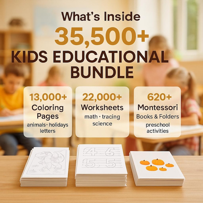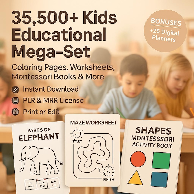 From worksheets to coloring pages and Montessori activities — this is the biggest kids’ learning resource on HostBas. Editable, printable, and perfect for learning OR resale.