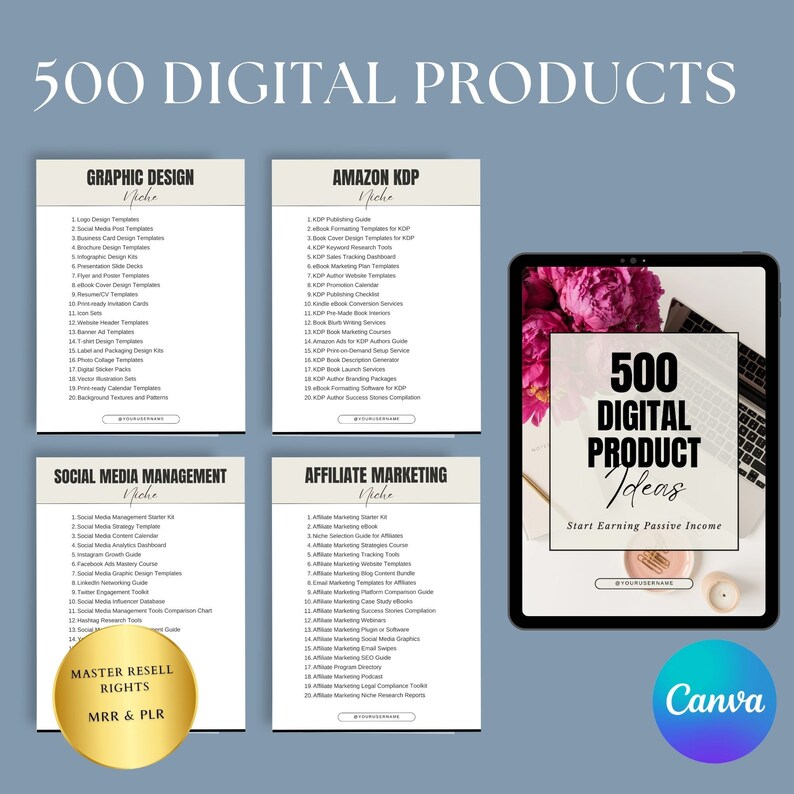 500 Passive Income Digital Product Ideas: MRR PLR Canva Templates