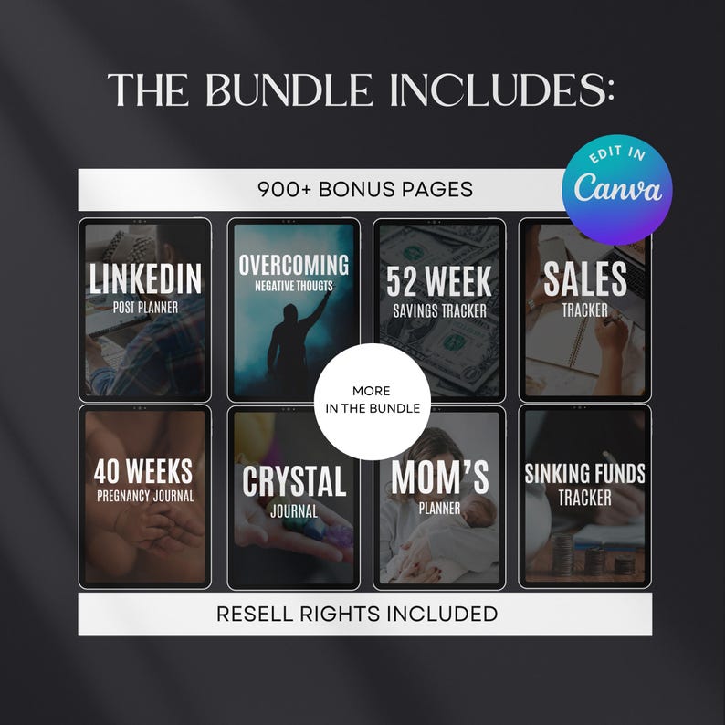 - ? 7500+ Digital Planner Pages Mega Bundle – The ultimate collection of planners covering every niche you can imagine: business, fitness, wellness, finance, lifestyle, academics, productivity, and more.