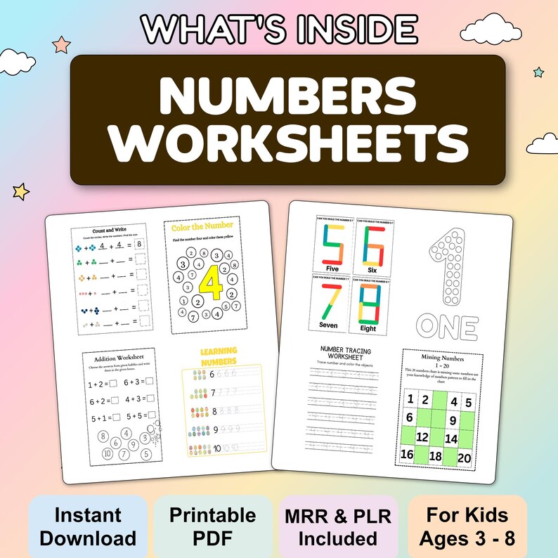 - ? Math Worksheets – Engage kids with counting, matching, and early arithmetic.