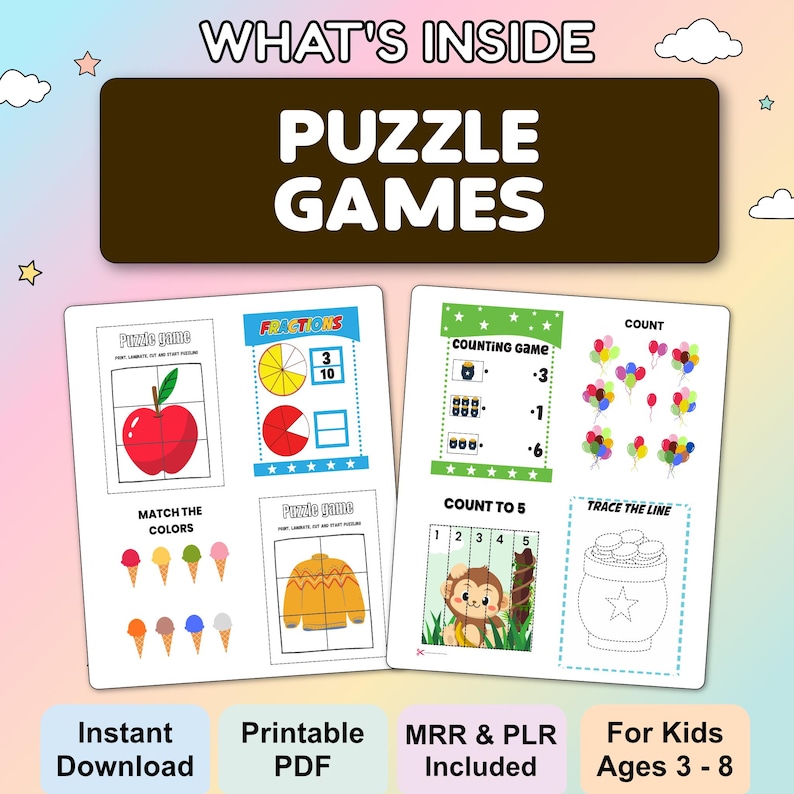 - ? Brain Games & Puzzles – Mazes, word searches, and critical thinking fun.