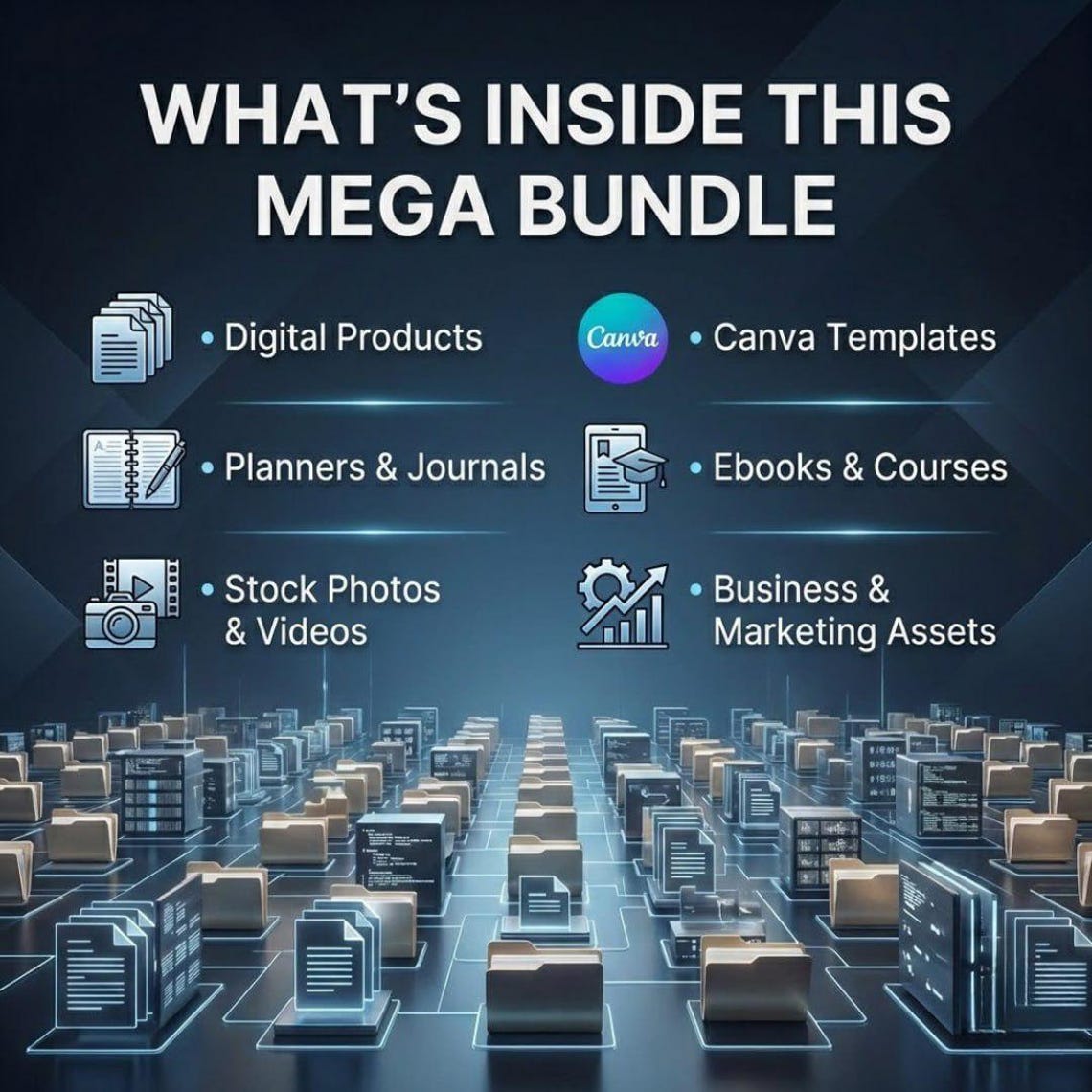 With this 80M+ Digital Products Mega Bundle, you instantly unlock a massive library of ready-to-sell digital assets you can brand, resell, bundle, and profit from — even if you’ve never sold online before.
